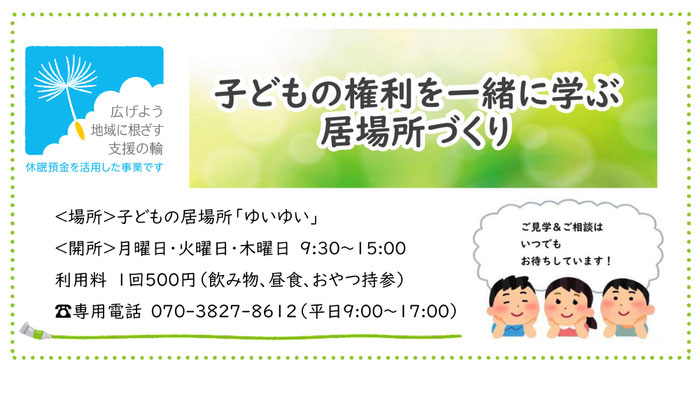 学校ではなく、家ではなく、ちょっと過ごす場所として…居場所をご利用ください。